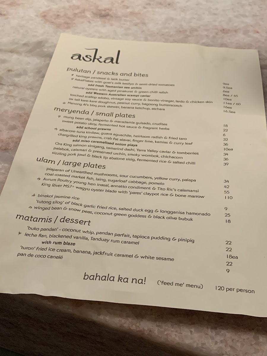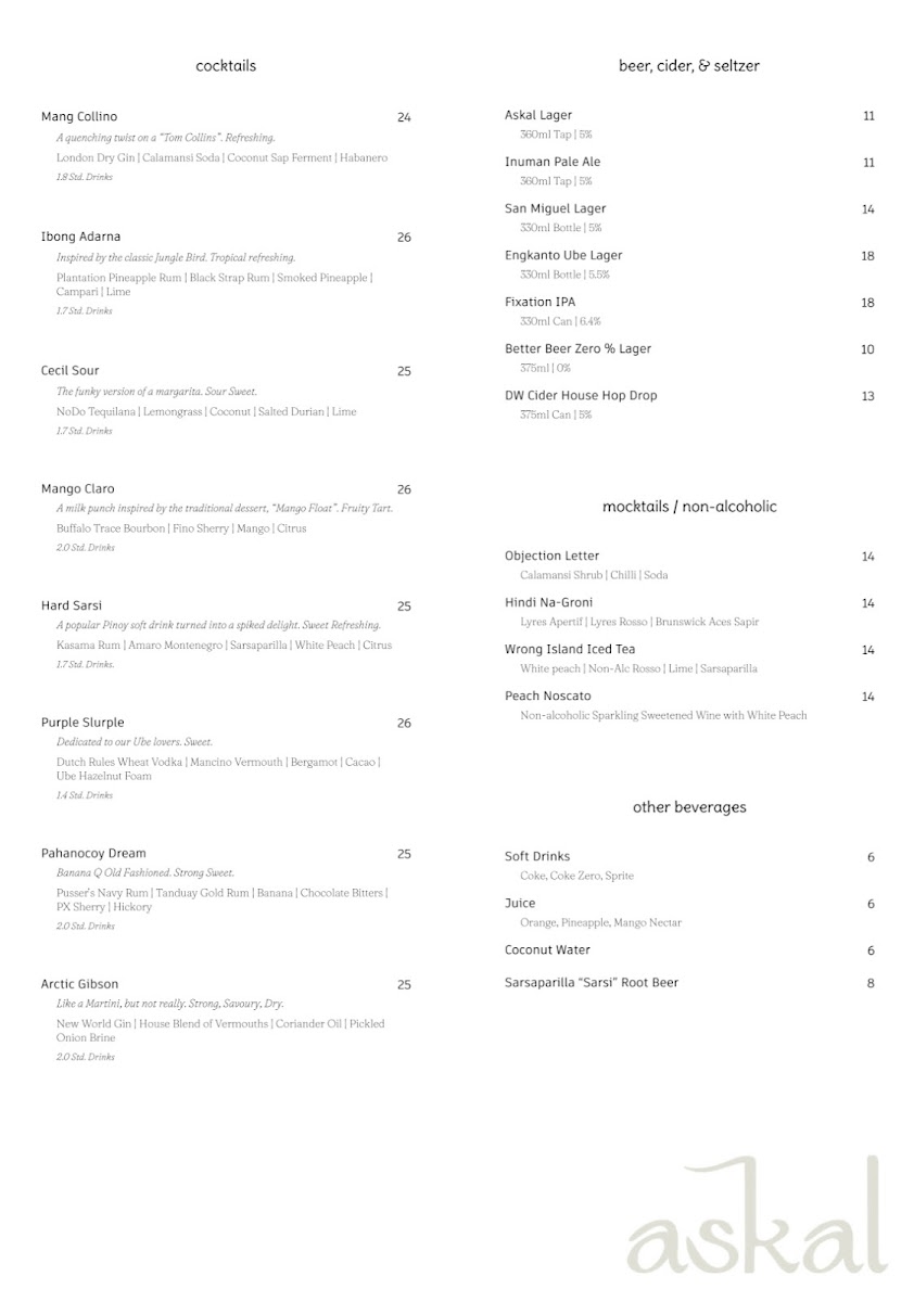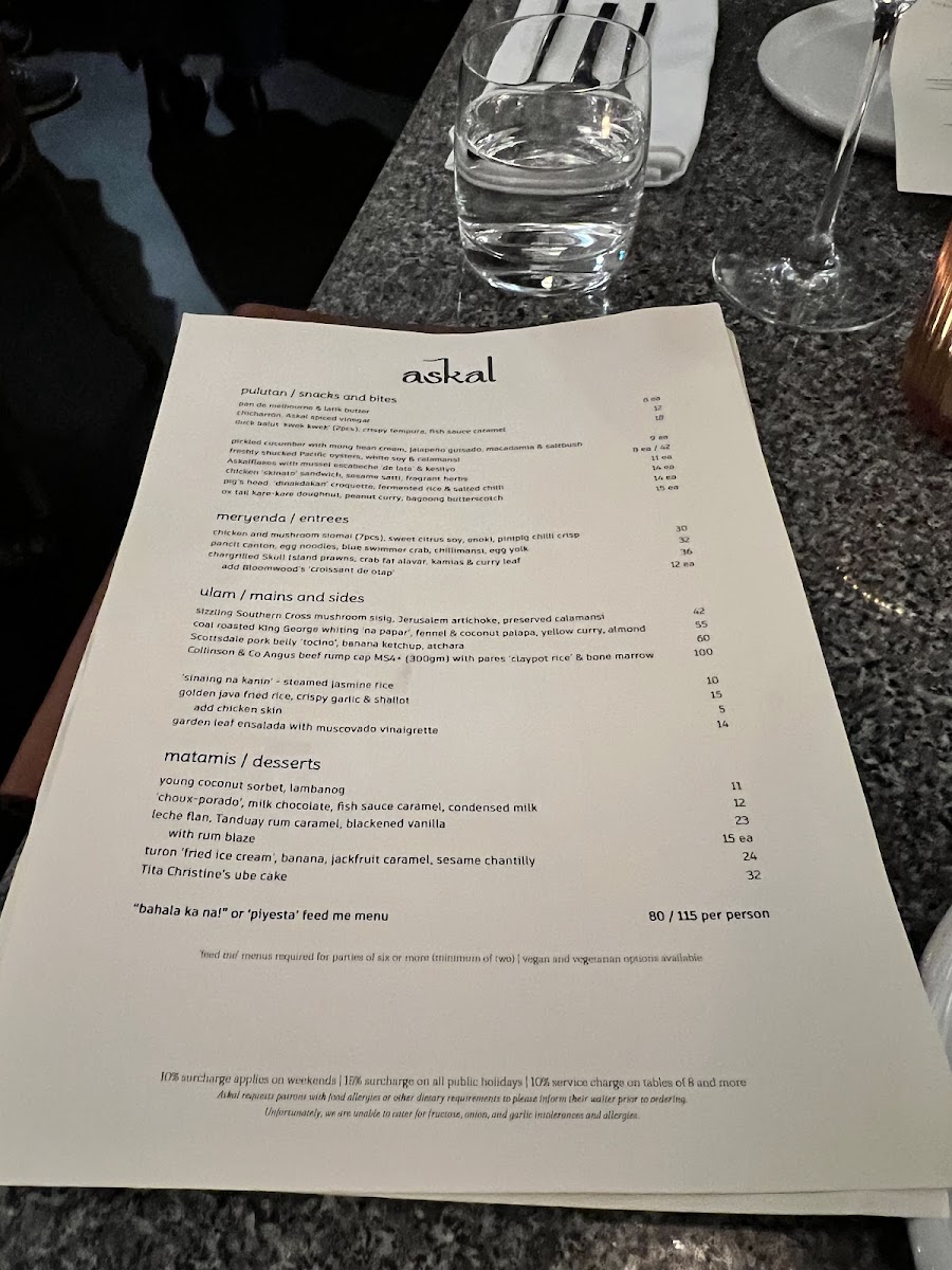 Askal is more than just a restaurant; it's a journey through Filipino heritage and flavors, executed with finesse and warmth. Maraming salamat to the dedicated team that makes each visit special!