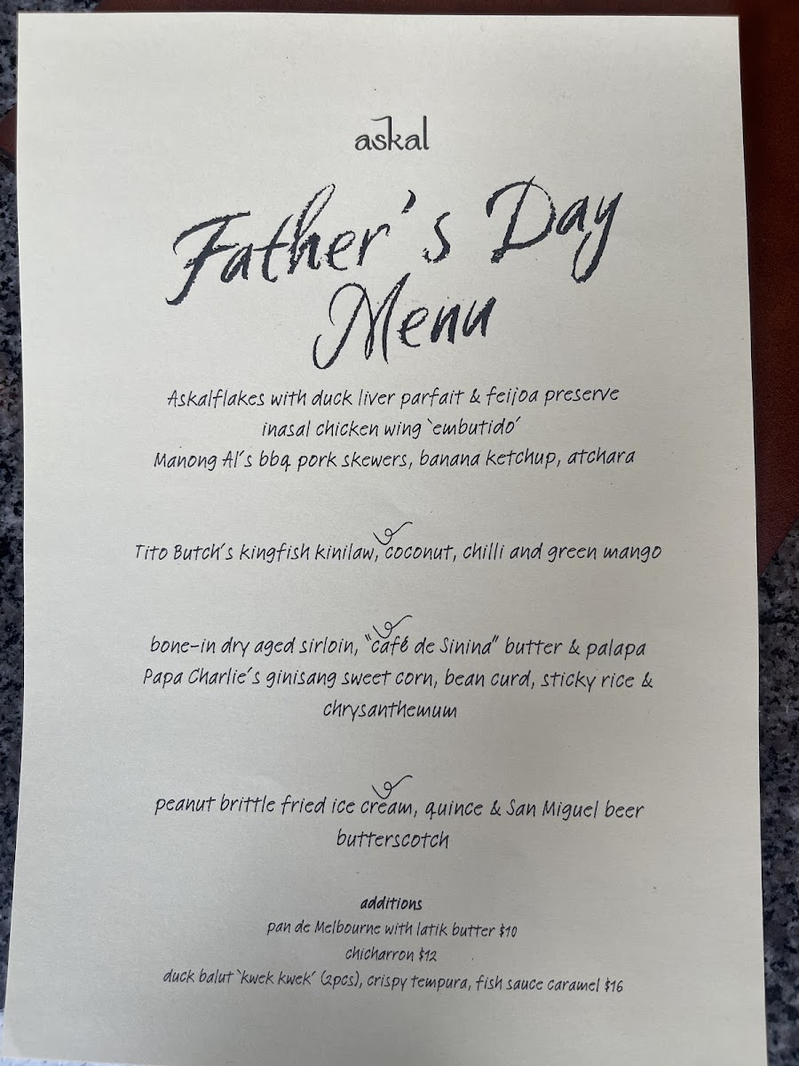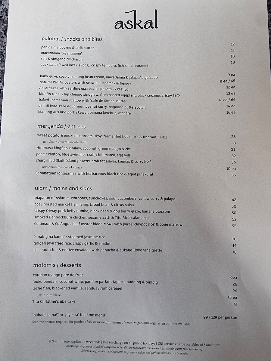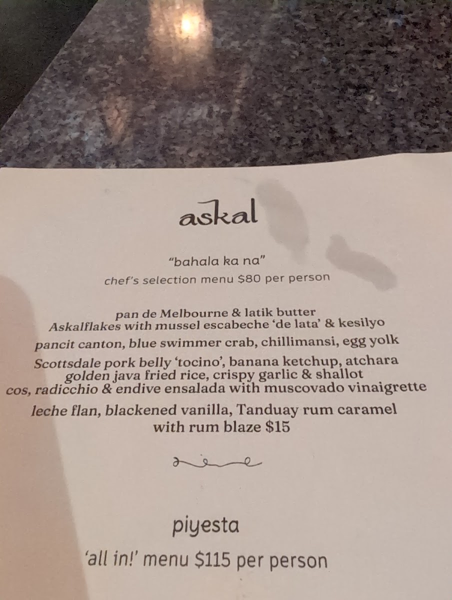 Askal is more than just a restaurant; it's a journey through Filipino heritage and flavors, executed with finesse and warmth. Maraming salamat to the dedicated team that makes each visit special!